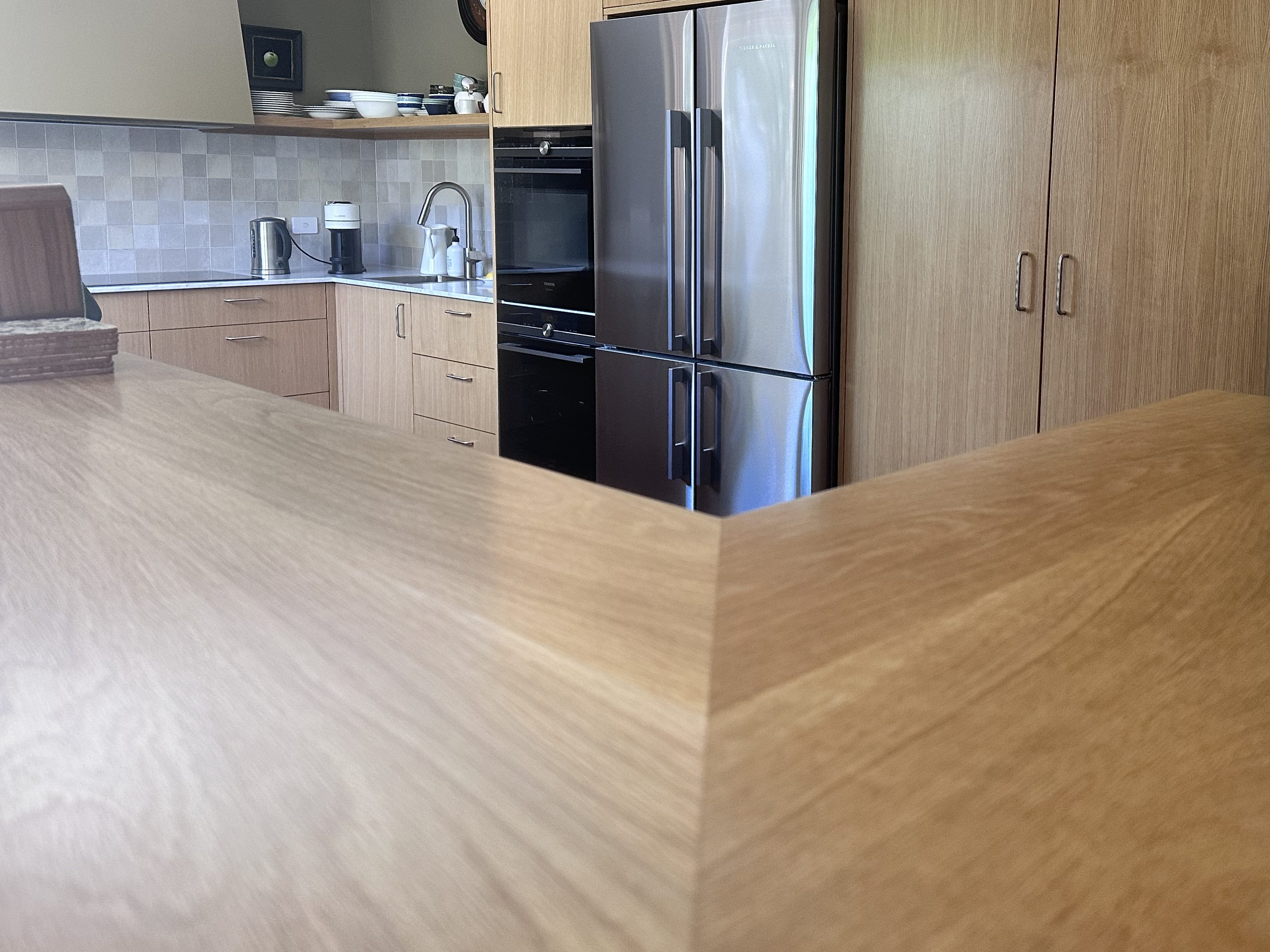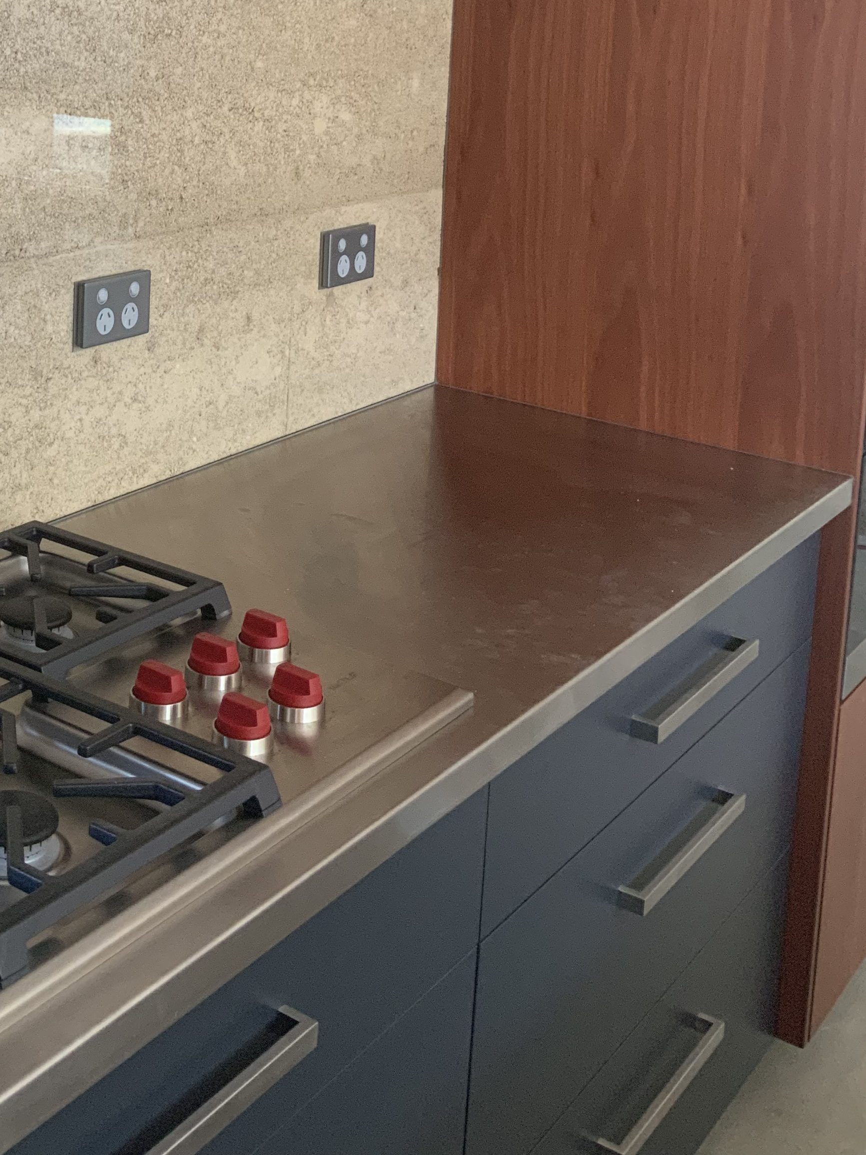 Stainless steel and timber are also popular choices, they may require a bit more upkeep than a stone or laminate surface but a lot of people find the aesthetic result is well worth the effort!